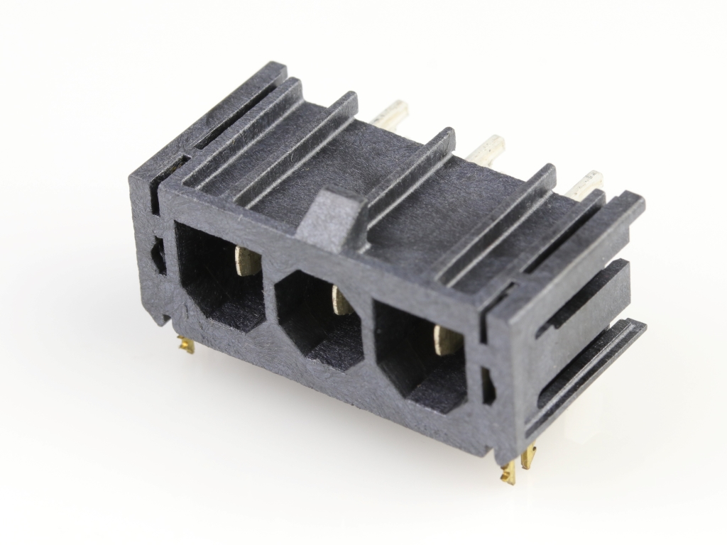 Super Sabre Right-Angle Header, 3 Circuit, Short Solder Tail with Board Lock, Complies with UL1977 Finger Proof Standards, Glow-Wire Capable