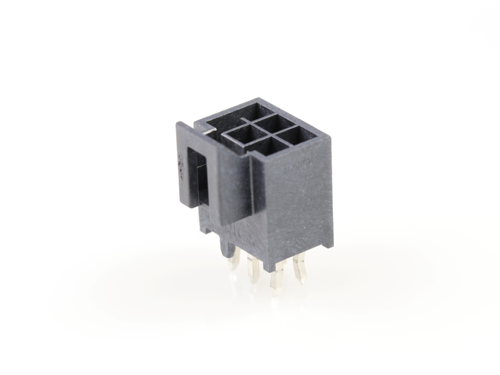 Nano-Fit Vertical Header, Through Hole, 2.50mm Pitch, Dual Row, 6 Circuits, with Kinked Pins, 0.38µm Gold (Au) Plating, Black, Glow-Wire Capable, Tray