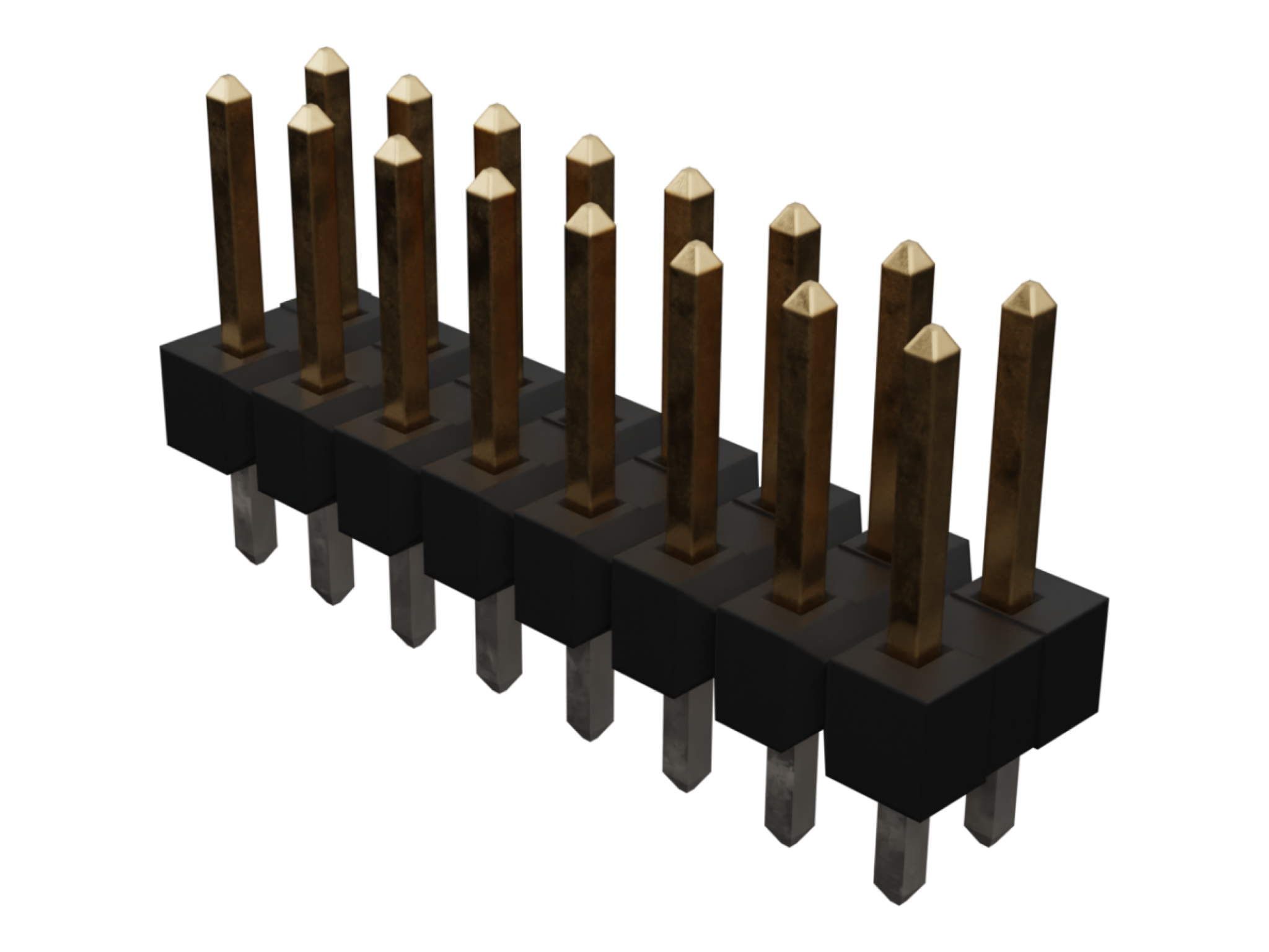 2.54mm Pitch C-Grid Header, Through Hole, Dual Row, Vertical, 16 Circuits, 0.75µm Gold (Au) Selective Plating, Tray Packaging, Lead-Free