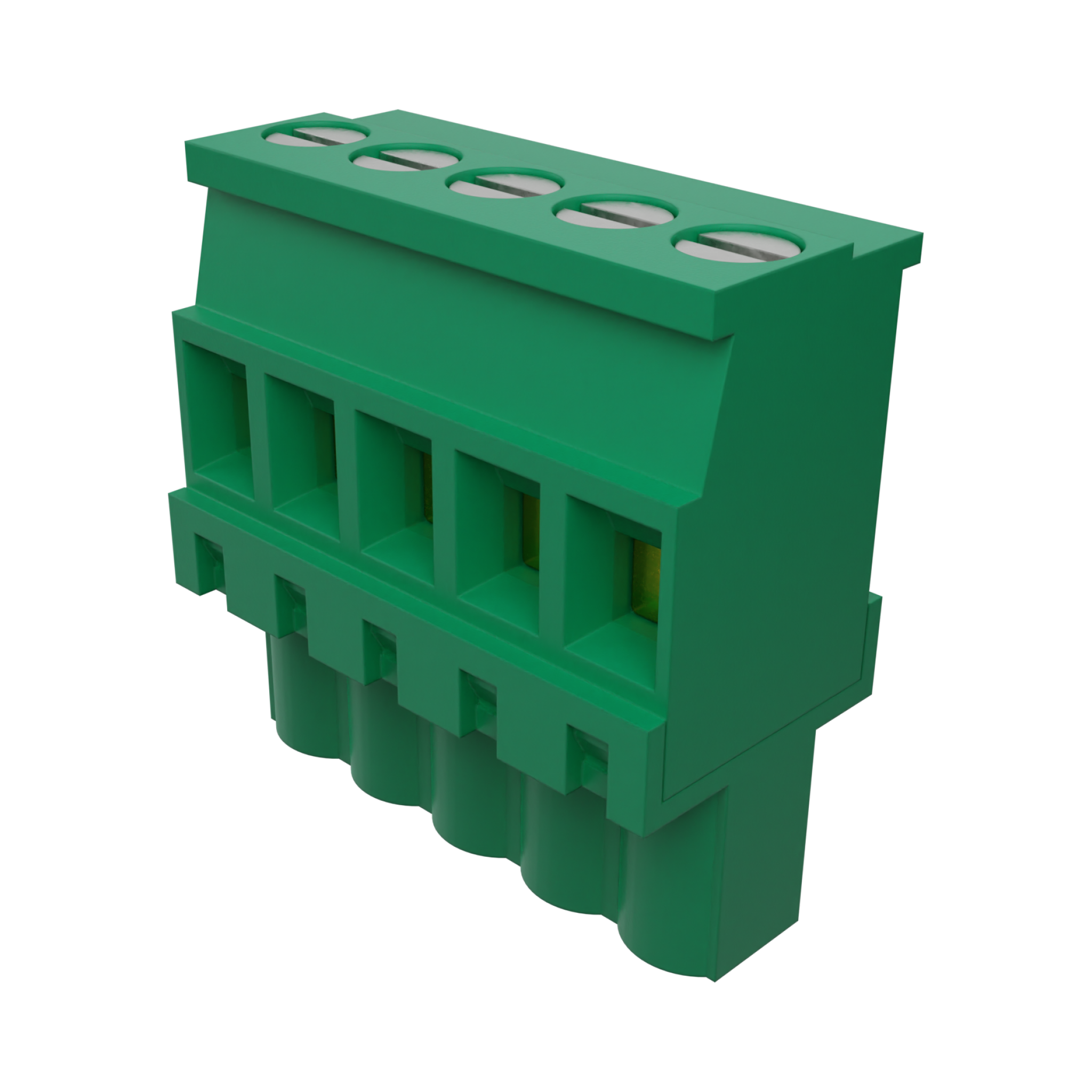 5.00mm Pitch Eurostyle Vertical Plug, with Reverse Imprinting, Rear Wire Entry, Green Housing, Gold (Au) Plated, 5 Circuits